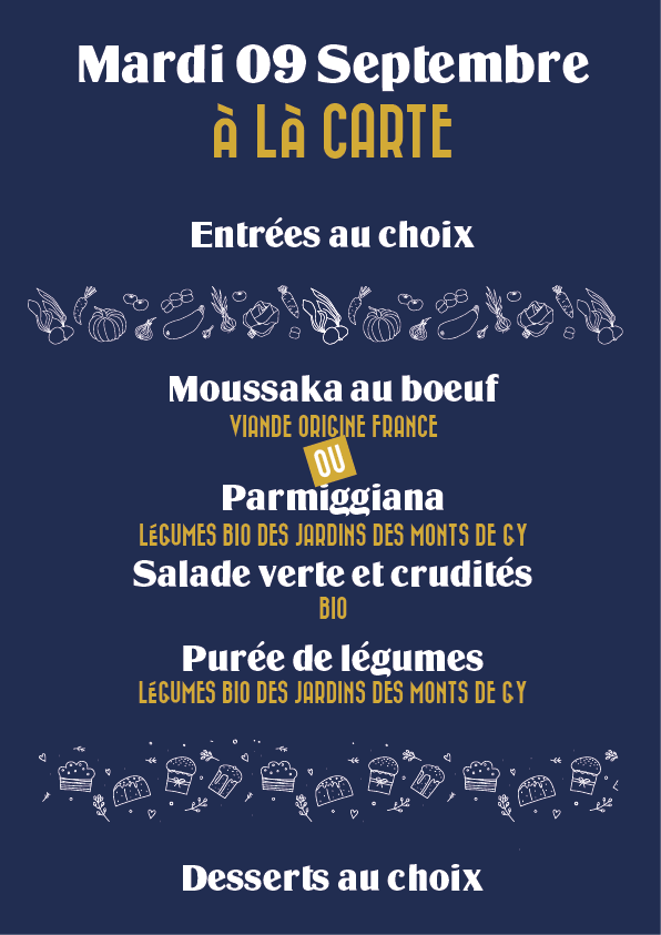 * Attention les menus peuvent varier selon nos arrivages.